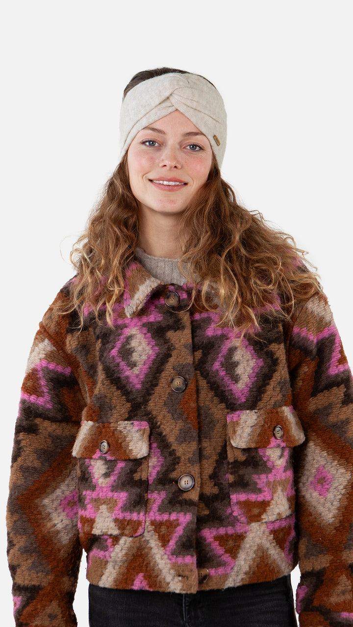 Dankzij de subtiele twist aan de voorkant krijgt de Witzia-headband een moderne, vrouwelijke uitstraling. De neutrale crèmekleur maakt het een veelzijdig accessoire dat moeiteloos te combineren is met elke winterjas of outfit.