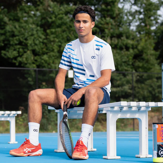 Dit ONCOURT men's performance shirt met unieke print en ronde hals is gemaakt van sterke en ademende materialen, die snel vocht afvoeren. Dankzij de perfecte pasvorm biedt het shirt draagcomfort voor iedereen, zodat je vrij over de baan kan bewegen. Dit shirt is mooi te combineren met een van onze ONCOURT performance shorts.