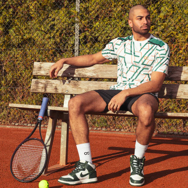 Het ONCOURT men’s performance shirt met unieke print en ronde hals is gemaakt van 92% polyester en 8% spandex. Ademend, sneldrogend en comfortabel, dit sportshirt voert vocht snel af en biedt perfecte pasvorm en bewegingsvrijheid. Ideaal te combineren met ONCOURT shorts.