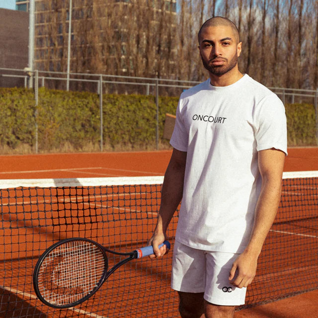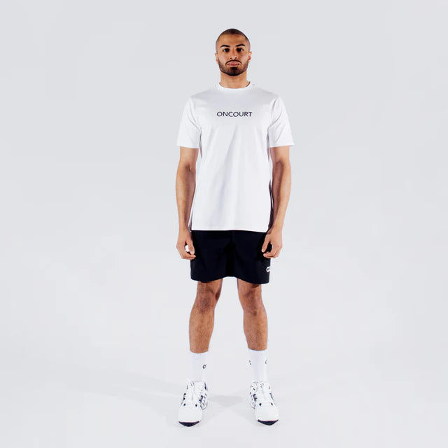 Het ONCOURT men’s training shirt met unieke logo print en ronde hals is gemaakt van 95% biologisch katoen en 5% elastaan. Dit comfortabele shirt biedt een fijne pasvorm, is ideaal voor op en naast de baan en combineert perfect met ONCOURT performance shorts.