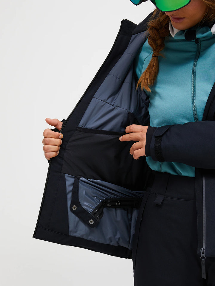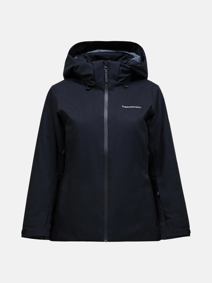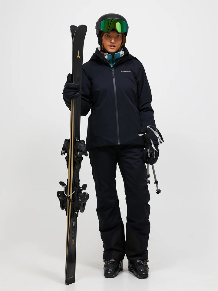 De tijdloze zwarte kleur maakt de jas veelzijdig en eenvoudig te combineren met andere Peak Performance skikleding.
