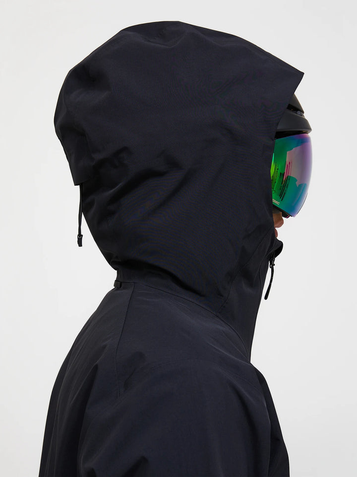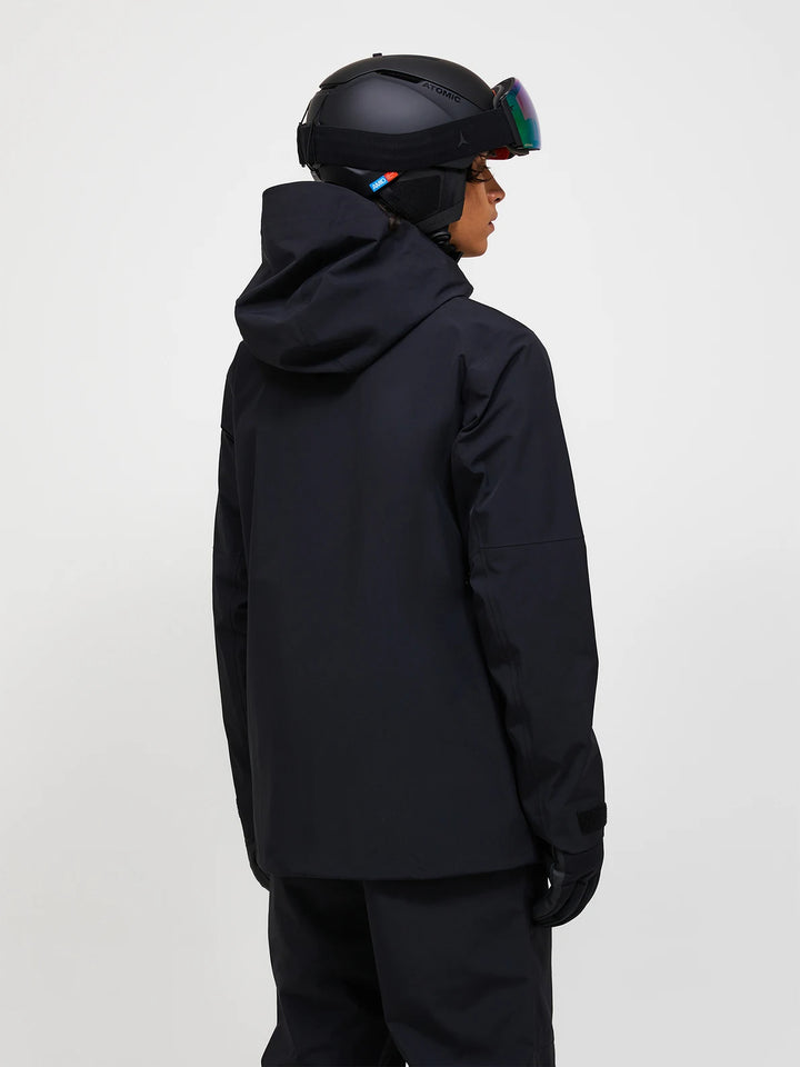 Het minimalistische ontwerp in zwart geeft de jas een moderne, veelzijdige uitstraling die zowel op de piste als in de stad uitstekend tot zijn recht komt.
