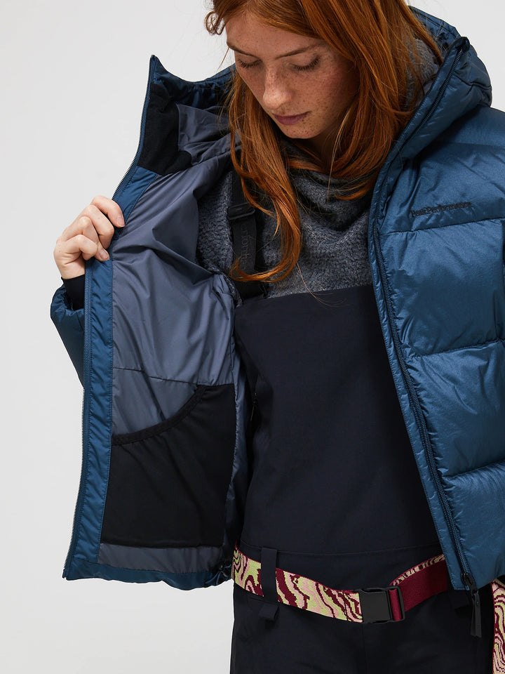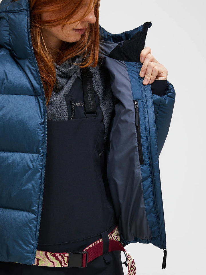 De Peak Performance Glissade Down Ski Jacket Women in Mountain Lake is een high-performance dames-skijas die warmte, comfort en stijl moeiteloos combineert voor winterse avonturen op de piste en daarbuiten. Deze jas is ontworpen voor vrouwen die maximale isolatie en bewegingsvrijheid zoeken zonder in te leveren op een moderne, sportieve uitstraling.
