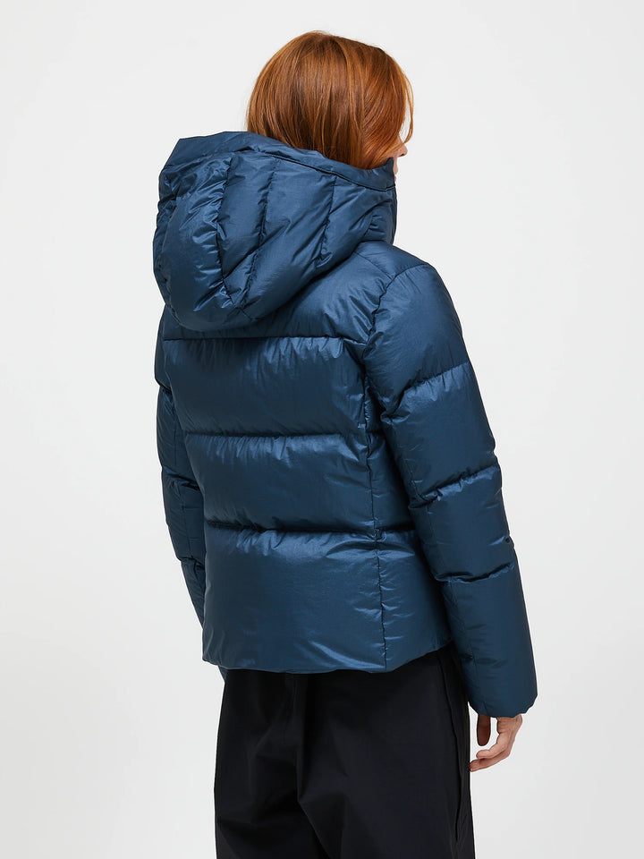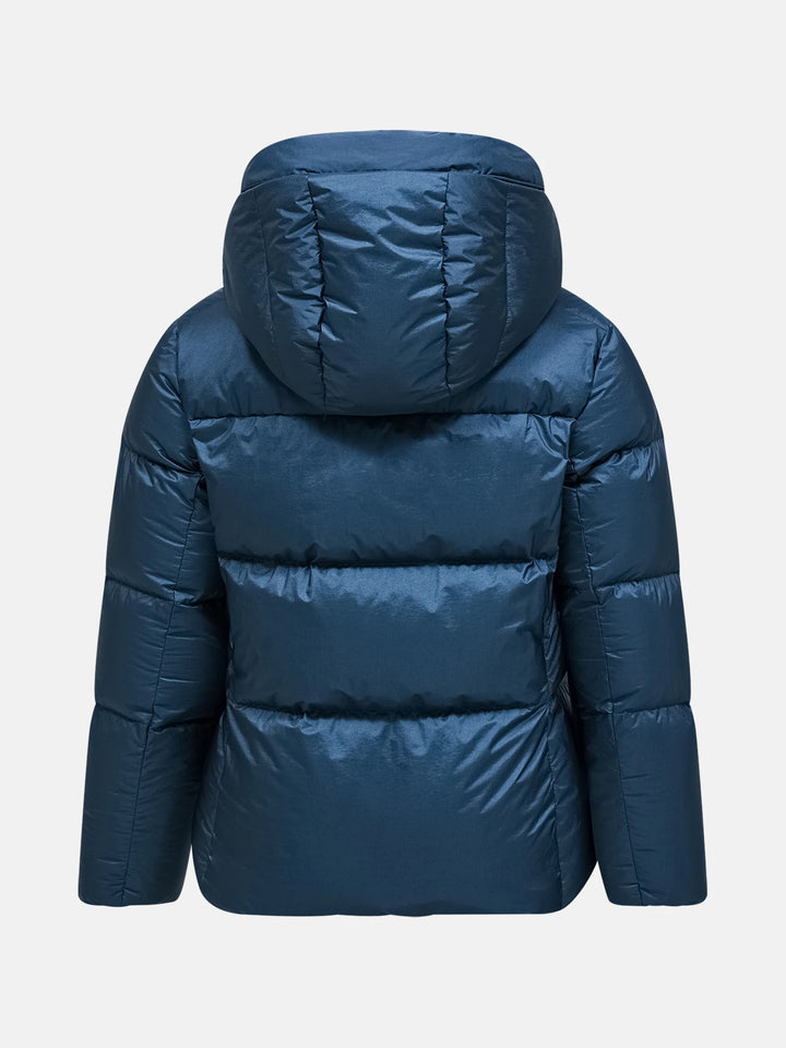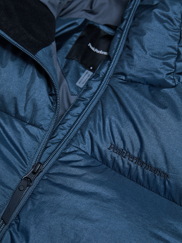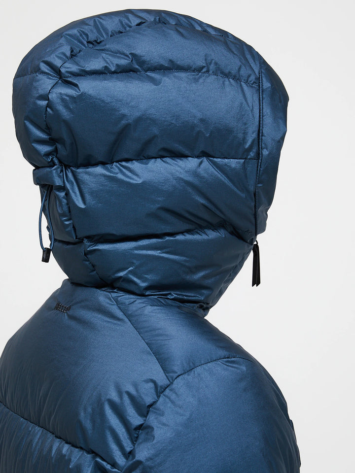 De jas is gevuld met hoogwaardig 90/10 eendendons met een hoge fill power, wat zorgt voor uitstekende warmte-gewichtsverhouding en langdurige isolatie. Het buitenkleed is wind- en waterafstotend dankzij een PFC-vrije DWR-coating, waardoor lichte sneeuw en regen geen kans krijgen. Strategisch geplaatste donsquilting optimaliseert warmte waar dat het meest nodig is, terwijl de regular-fit snit zorgt voor comfort en voldoende bewegingsvrijheid.