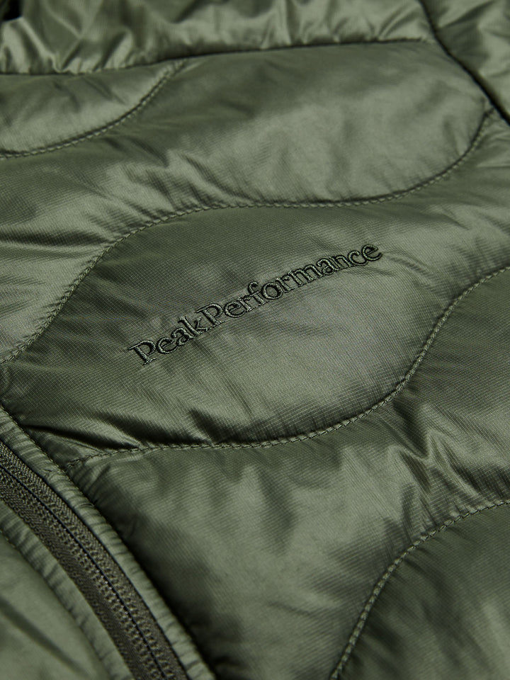 De Peak Performance Helium Down Hood Jacket Men in Pine Needle is een ultralichte en warme herenjas die perfect de balans vindt tussen stijl, comfort en functionaliteit. Deze jas is gevuld met hoogwaardig 90/10 eendendons met een fill power van 700, wat zorgt voor uitstekende isolatie en een optimale warmte-gewichtsverhouding.