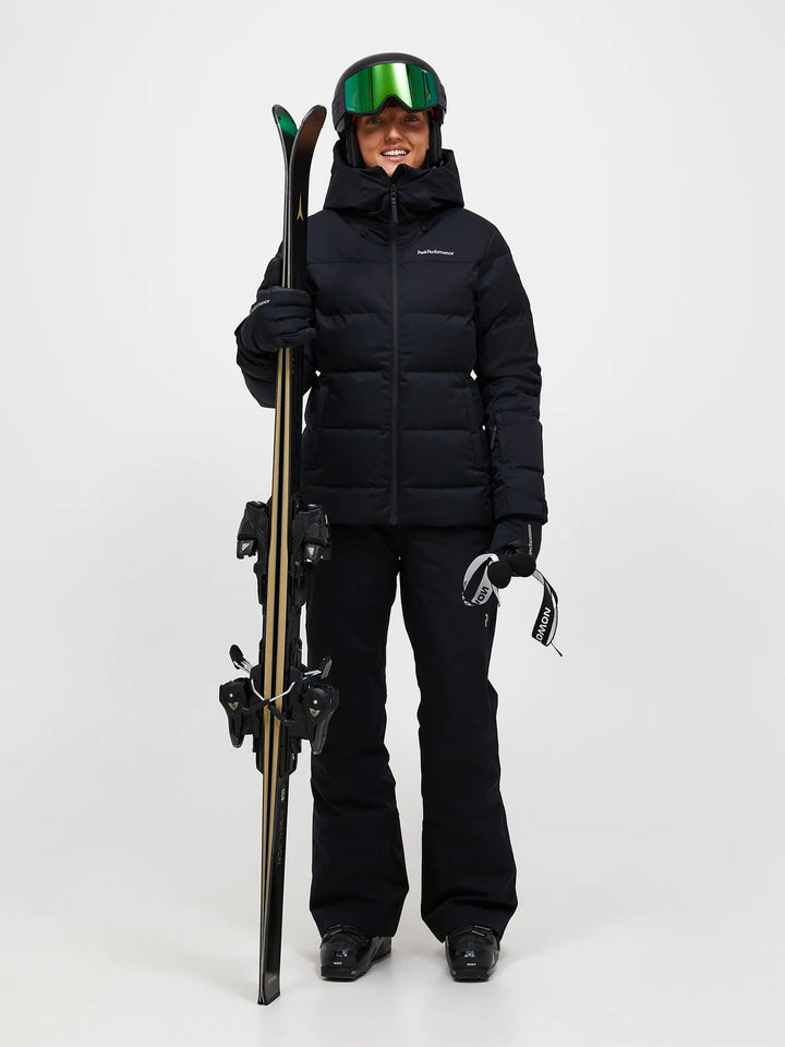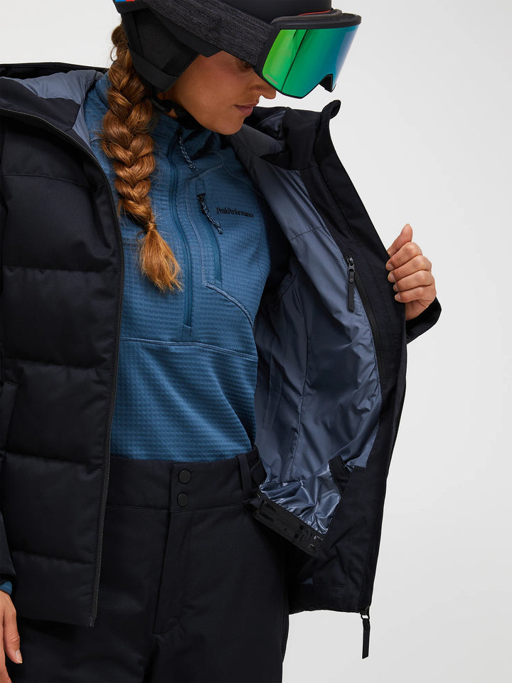 De Peak Performance Shred Down Ski Jacket Women in zwart is een technische damesjas die perfecte warmte, comfort en bewegingsvrijheid biedt tijdens wintersport en koude winterdagen. Deze skijas is ontworpen met een slanke, vrouwelijke pasvorm en combineert innovatieve materialen met hoogwaardige donsisolatie voor maximale prestaties.