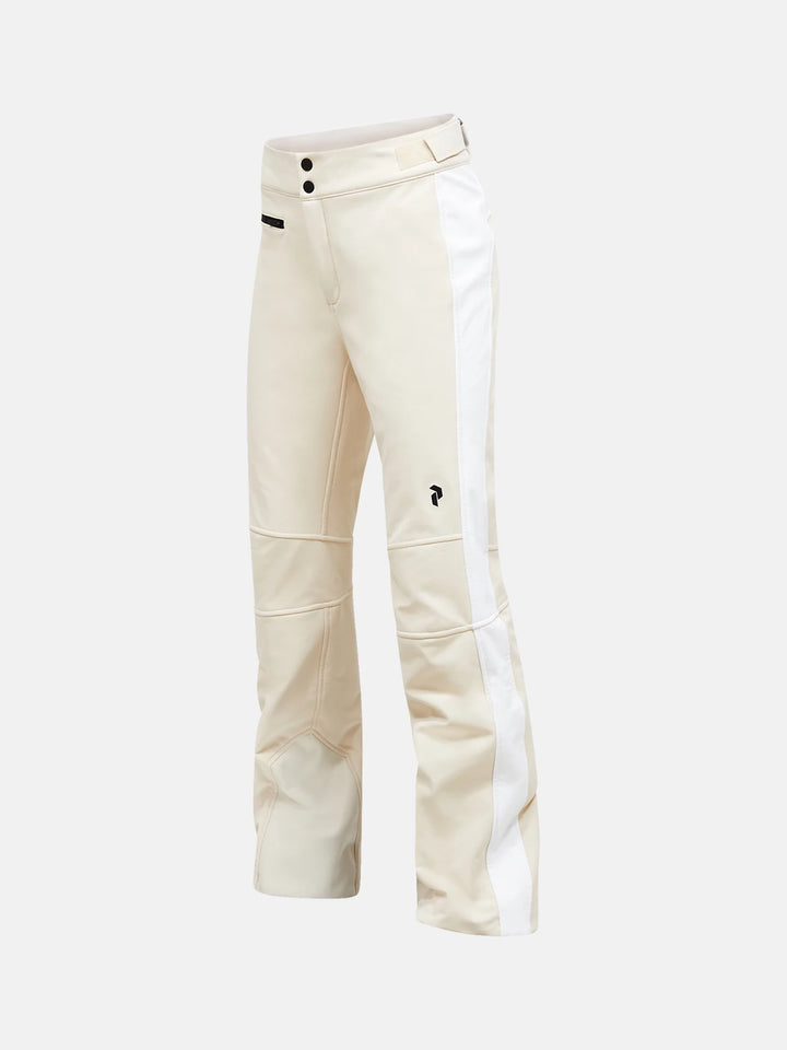 De Peak Performance Stretch Softshell Ski Pants Women in Sand Fog zijn ontworpen voor dames die tijdens het skiën of snowboarden optimale bewegingsvrijheid en comfort willen combineren met een stijlvolle, moderne uitstraling. Deze ski‑broek biedt maximale flexibiliteit dankzij het stretch softshell‑materiaal, dat zowel rekbaar als ademend is.