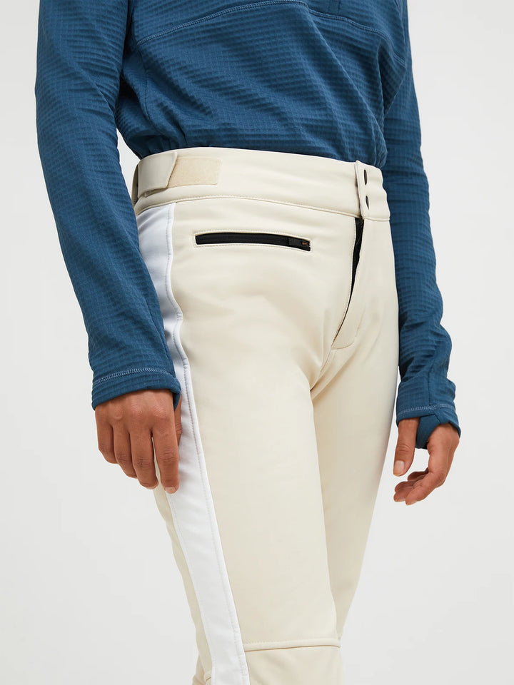 De broek is voorzien van praktische details, waaronder ritszakken voor waardevolle spullen, een verstelbare taille en versterkte zoomranden om slijtage bij ski‑laarzen te voorkomen. Het zachte, neutrale Sand Fog-design maakt de broek veelzijdig en makkelijk te combineren met elke ski-jas of winteroutfit.