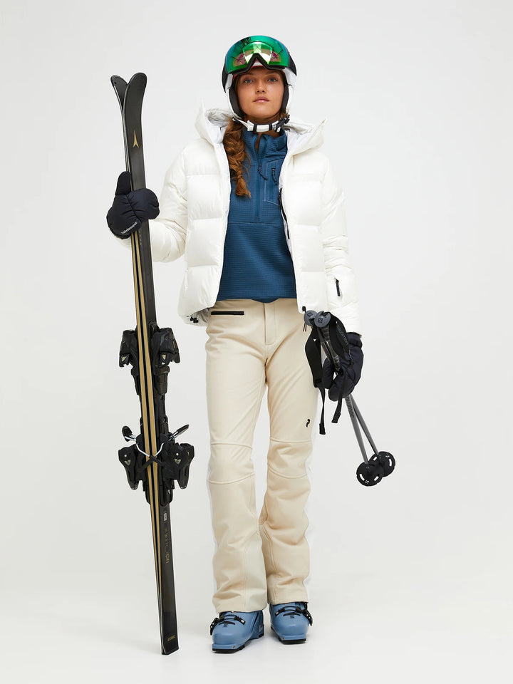 De Peak Performance Stretch Softshell Ski Pants Women in Sand Fog zijn ontworpen voor dames die tijdens het skiën of snowboarden optimale bewegingsvrijheid en comfort willen combineren met een stijlvolle,...